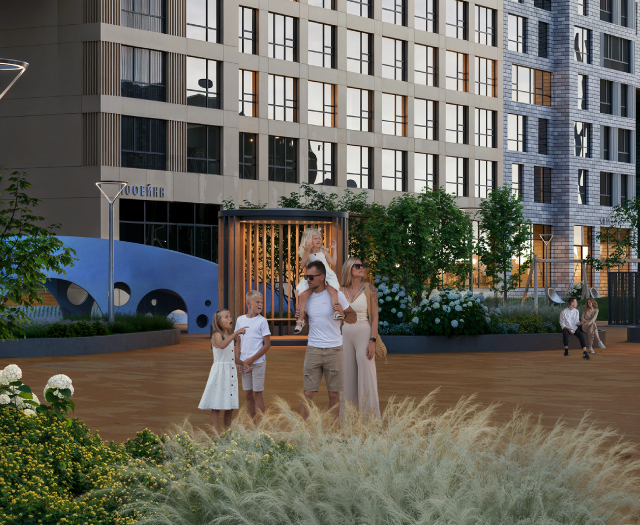Ваш уголок спокойствия посреди городской суеты — зелёный двор «MYPRIORITY Нижегородская», где каждый найдёт место для отдыха, перезагрузки и прогулок с детьми.