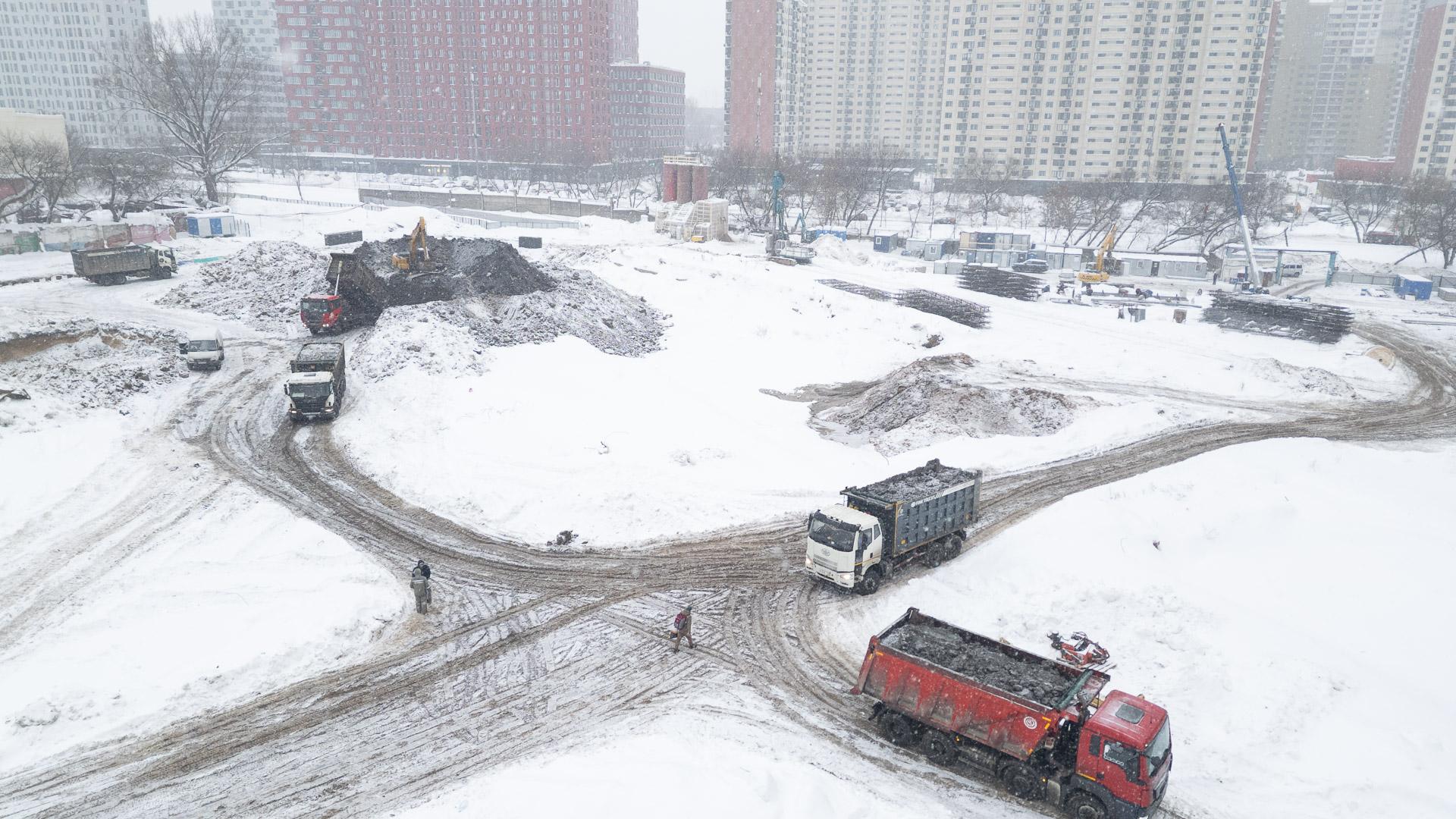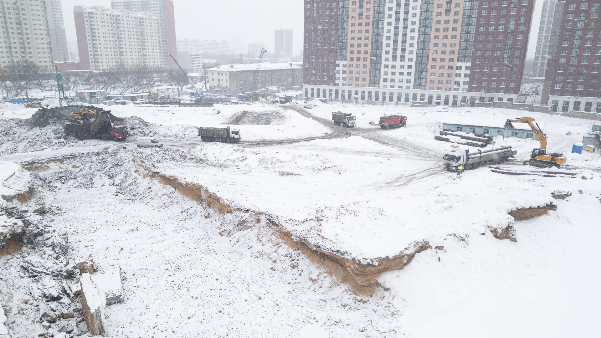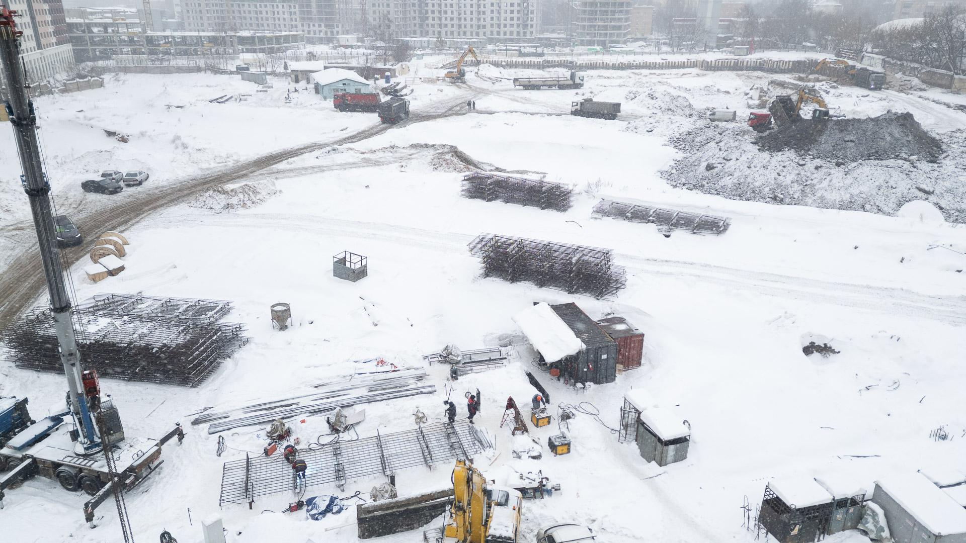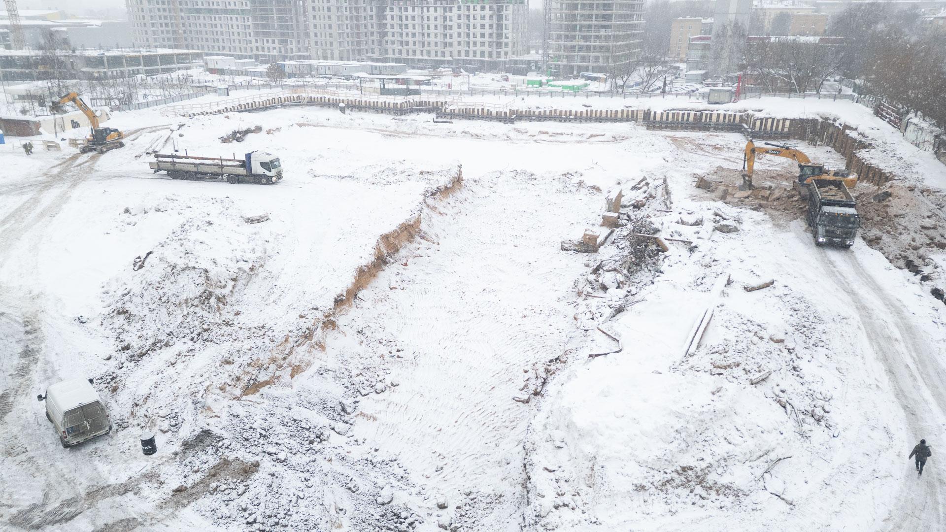 Дополнительно установлена комплектная трансформаторная подстанция наружной установки на 1 МВт для подключения башенных кранов, вынесены все временные здания из зоны котлована